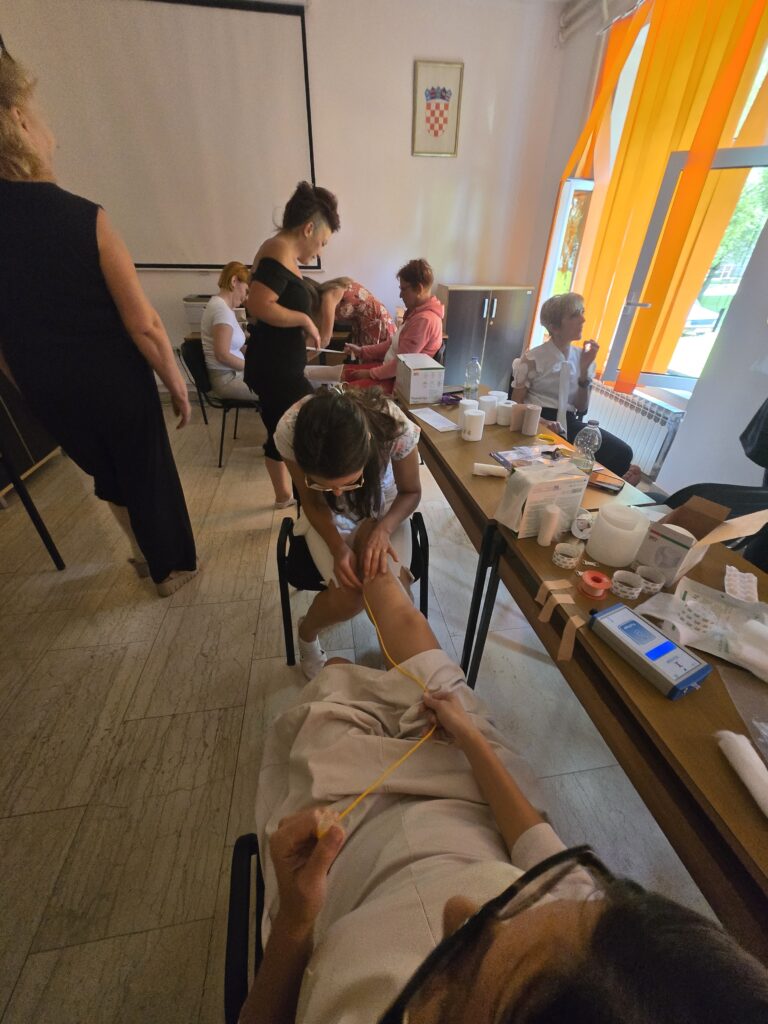 U subotu 06.09.2025. voditeljica Savjetovališta za rane Istarskih domova zdravlja dr Đuherić Kristina organizirala je u ispostavi Pazin radionicu primjene kompresivne terapije. Predavanje na temu Kompresivna terapija od Egipta do 21.stoljeća kao i interaktivnu radionicu održala je doc.dr.sc Sinožić Tamara. Prisustvovali su zdravstveni radnici IDZ-a iz obiteljske medicine,patronaže, zdravstvene njege u kući te farmaceuti. U petosatnom radnom okruženju, svi su sudionici dobili priliku praktičnog vježbanja postavljanja kompresivnih materijala te su zasigurno obogatili svoje buduće profesionalno djelovanje. IDZ pri Savjetovalištu za rane nastavlja s radionicama u skrbi akutnih i kroničnih rana.